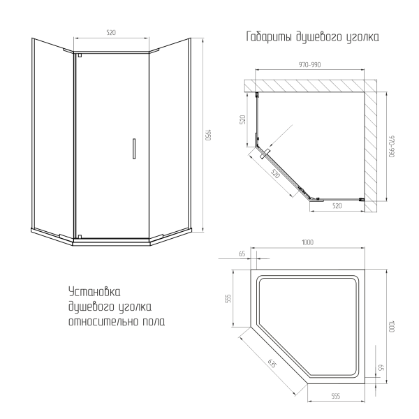 Эти ограждения подойдут для более просторных помещений. Распашные двери обеспечивают удобный доступ и могут открываться как внутрь, так и наружу, что позволяет выбирать оптимальный вариант установки. - Полукруглые и радиальные ограждения