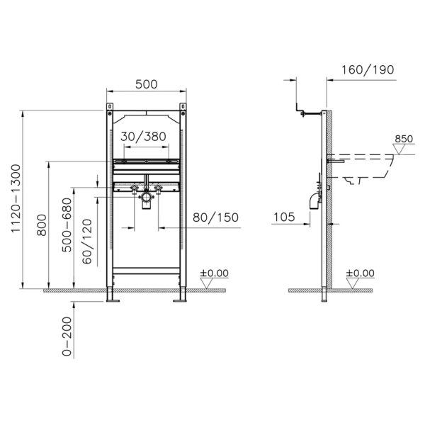 Такие конструкции предназначены для монтажа двух раковин на одной системе инсталляции. Они особенно удобны для семейных санузлов, где раковина используется несколькими людьми одновременно. - Инсталляции с возможностью регулировки высоты