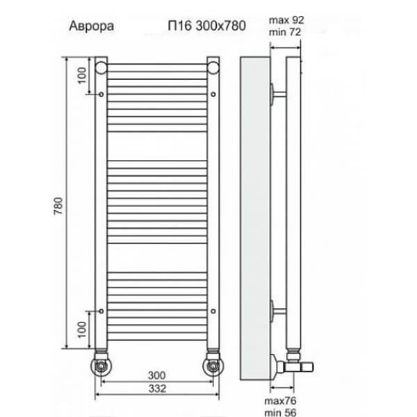 Полотенцесушитель водяной Terminus Аврора П16 30х78 хром Полотенцесушитель водяной Terminus Аврора П16 30х78 хром