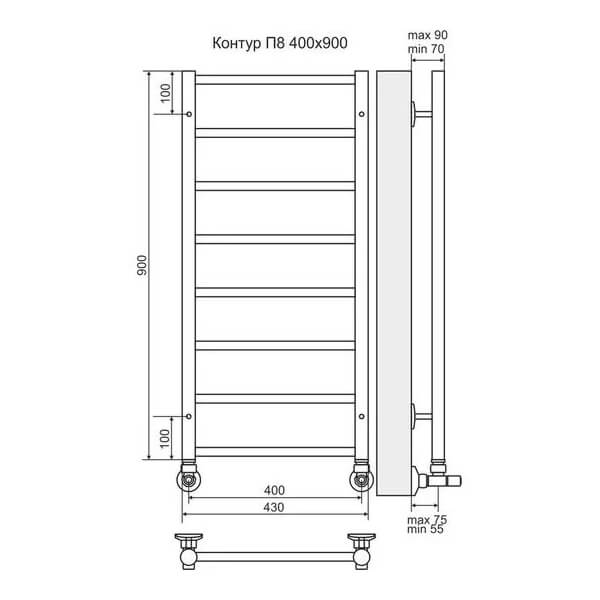 Полотенцесушитель водяной Terminus Контур П8 40x90 хром