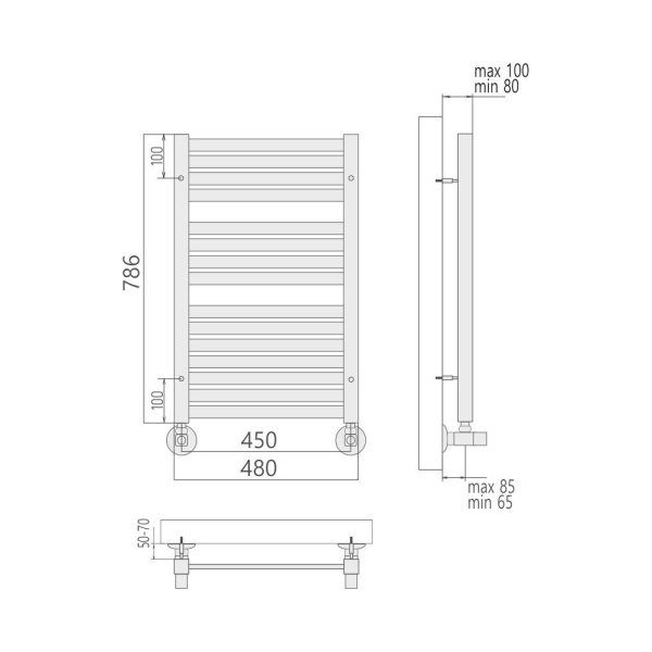 Полотенцесушитель водяной Terminus Римини П15 45х79 хром Полотенцесушитель водяной Terminus Римини П15 45х79 хром