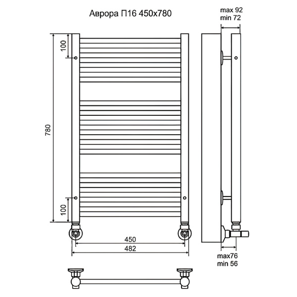 Полотенцесушитель водяной Terminus Аврора П16 50х78 с полкой, хром Полотенцесушитель водяной Terminus Аврора П16 50х78 с полкой, хром Полотенцесушитель водяной Terminus Аврора П16 50х78 с полкой, хром