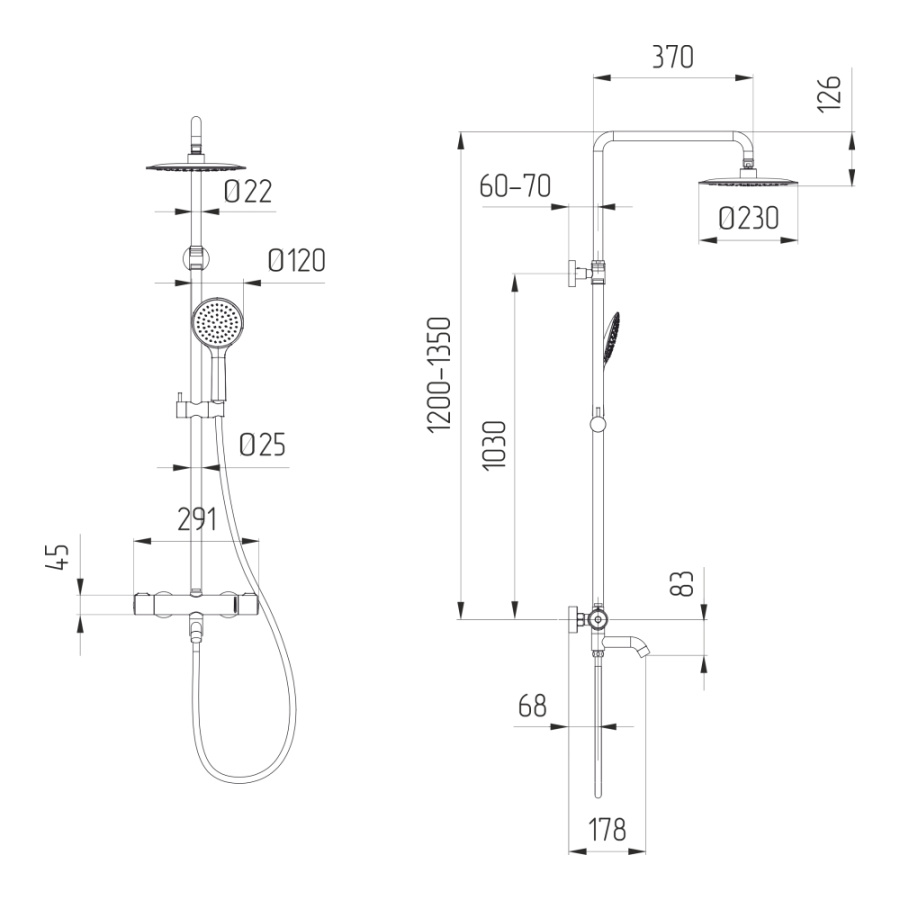 термостат; верхний душ; ручной душ; штанга; душевой шланг; эксцентрики; инструкция.
