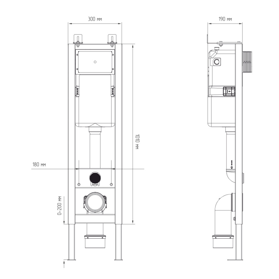 рама, бачок, комплект крепежей, отвод, переходник, комплект патрубков, запорный кран, шланг, арматура, монтажный короб