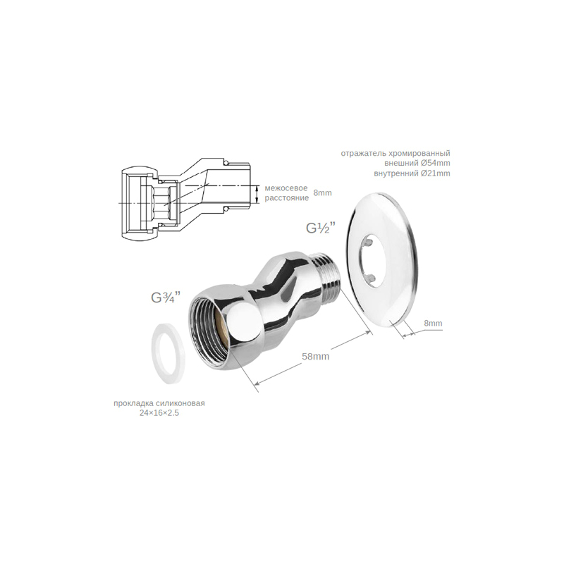 диаметр 3/4"х1/2"; межосевое расстояние 8 мм