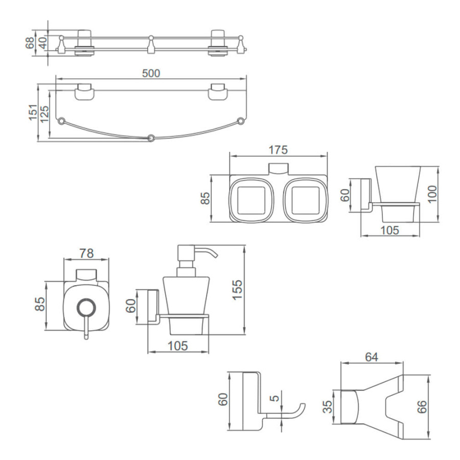 Набор Accoona 125 хром Стакан двойной+Дозатор+Крючок двойной+Полка
