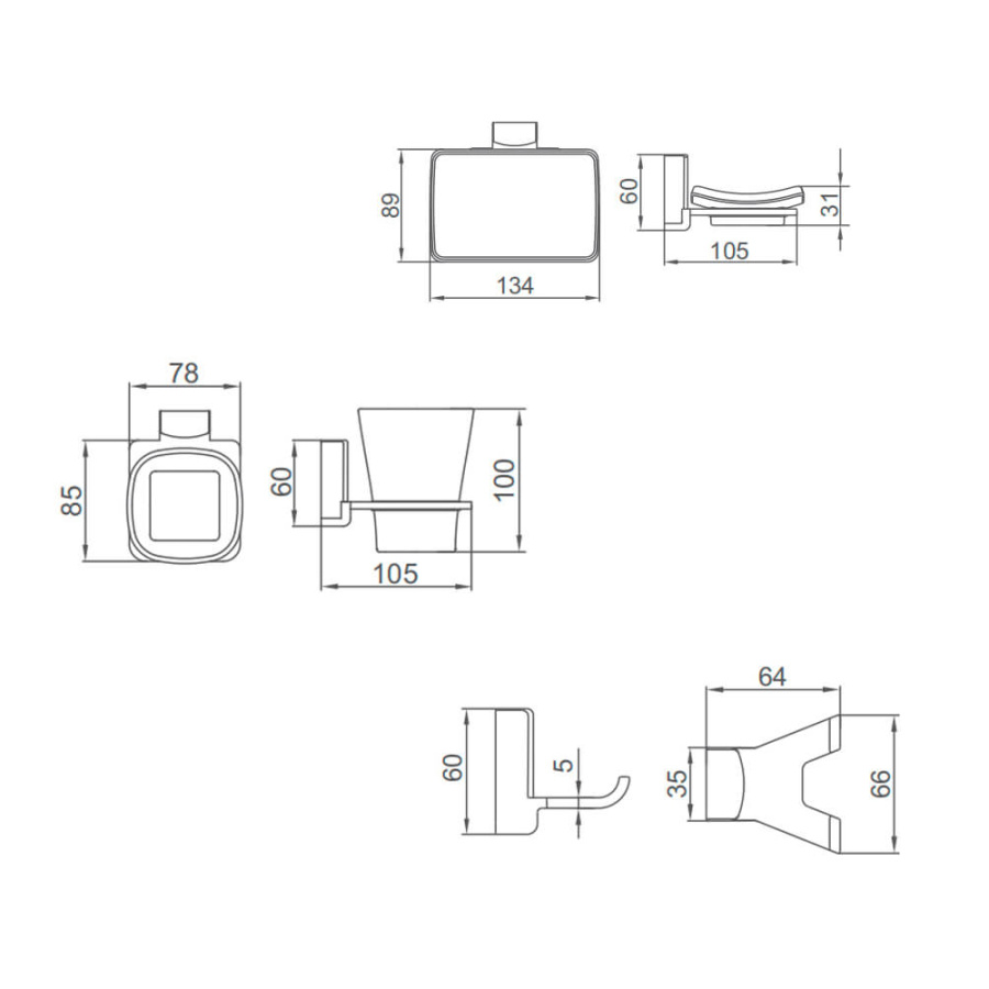 Набор Accoona 125 хром Стакан+Мыльница+Крючок двойной