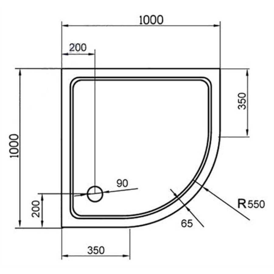Поддон для душа Cezares Tray 100x100 белый, четверть круга, стеклокомпозит, без сифона