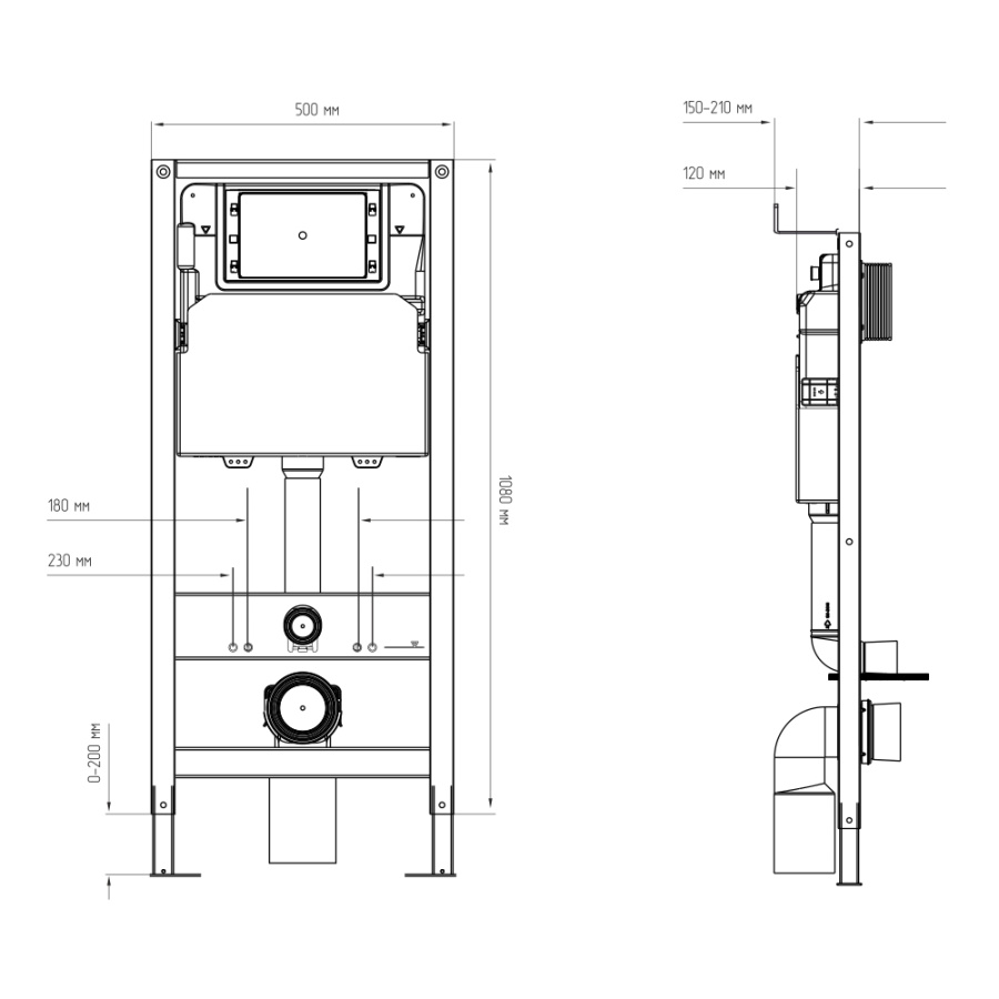 рама, бачок, комплект крепежей, отвод, переходник, комплект патрубков, запорный кран, шланг, арматура, монтажный короб