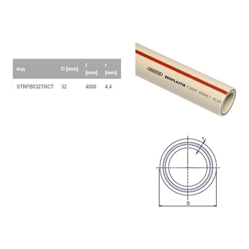 Труба Fiber Basalt Plus D 32 STRFB032TRCT 40 м/уп