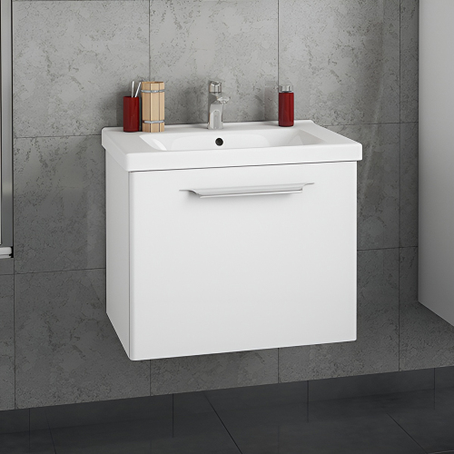 Тумба 650 1 ящ + Раковина Гармония Белый мат Lande DIBORG