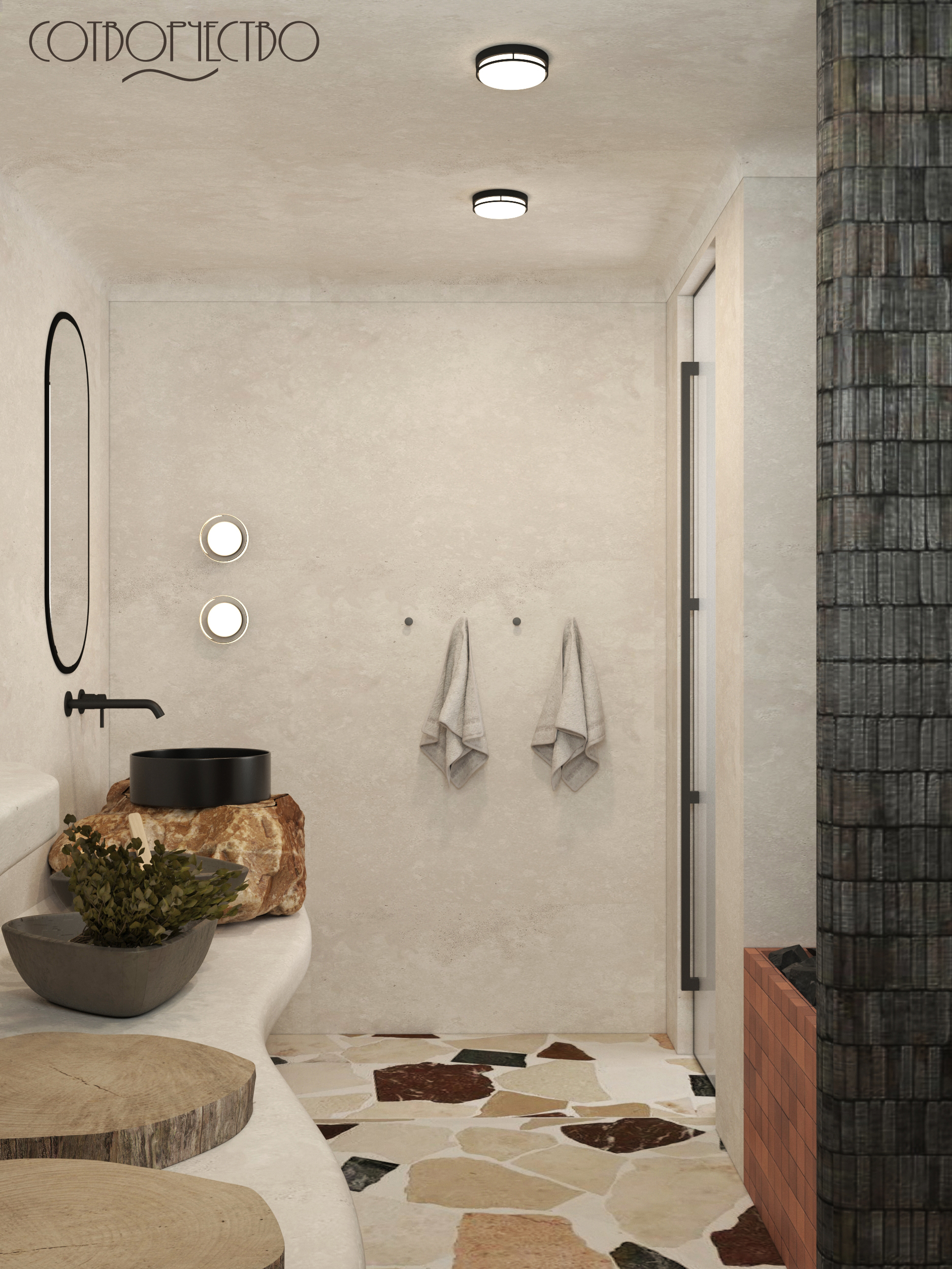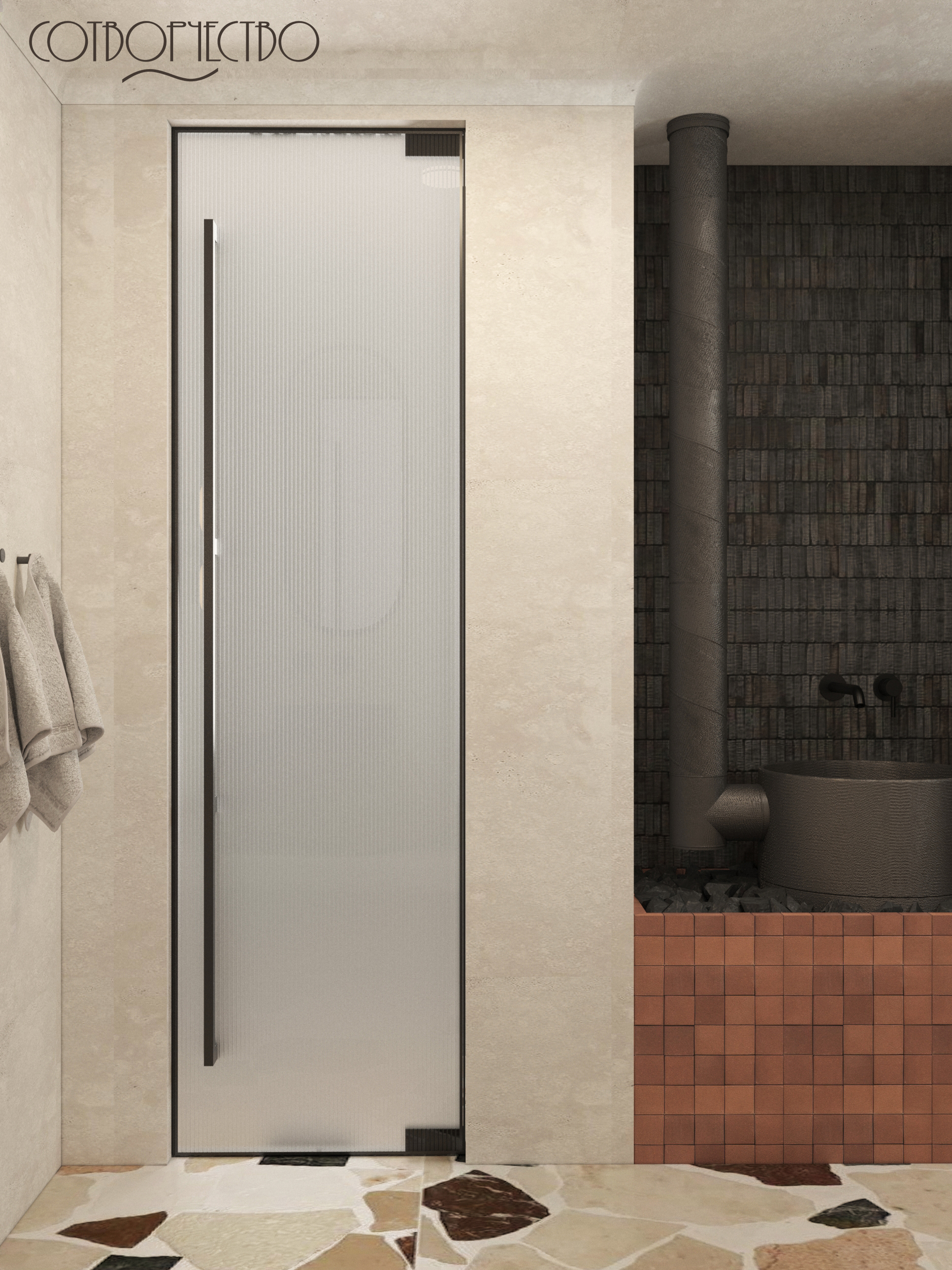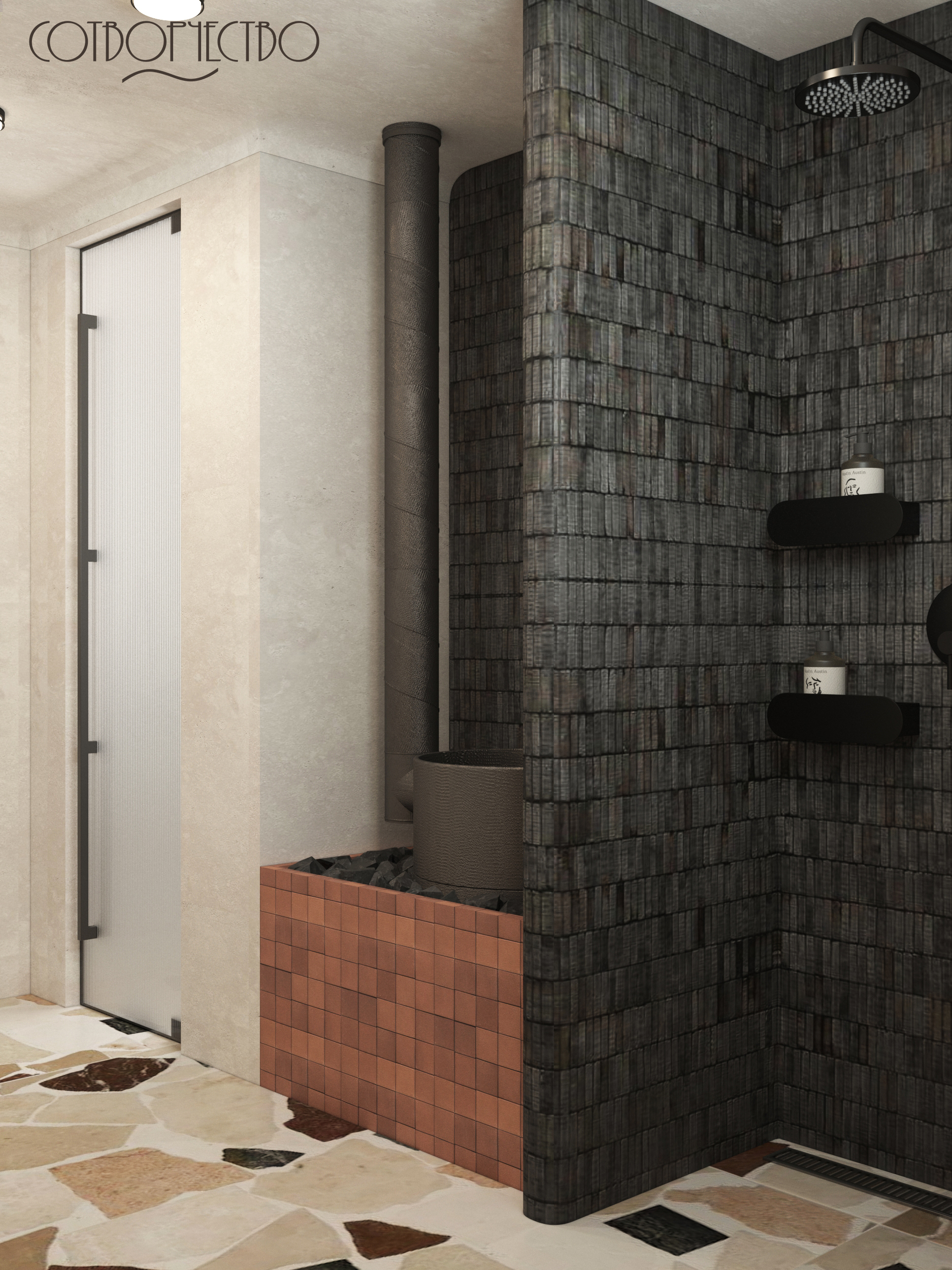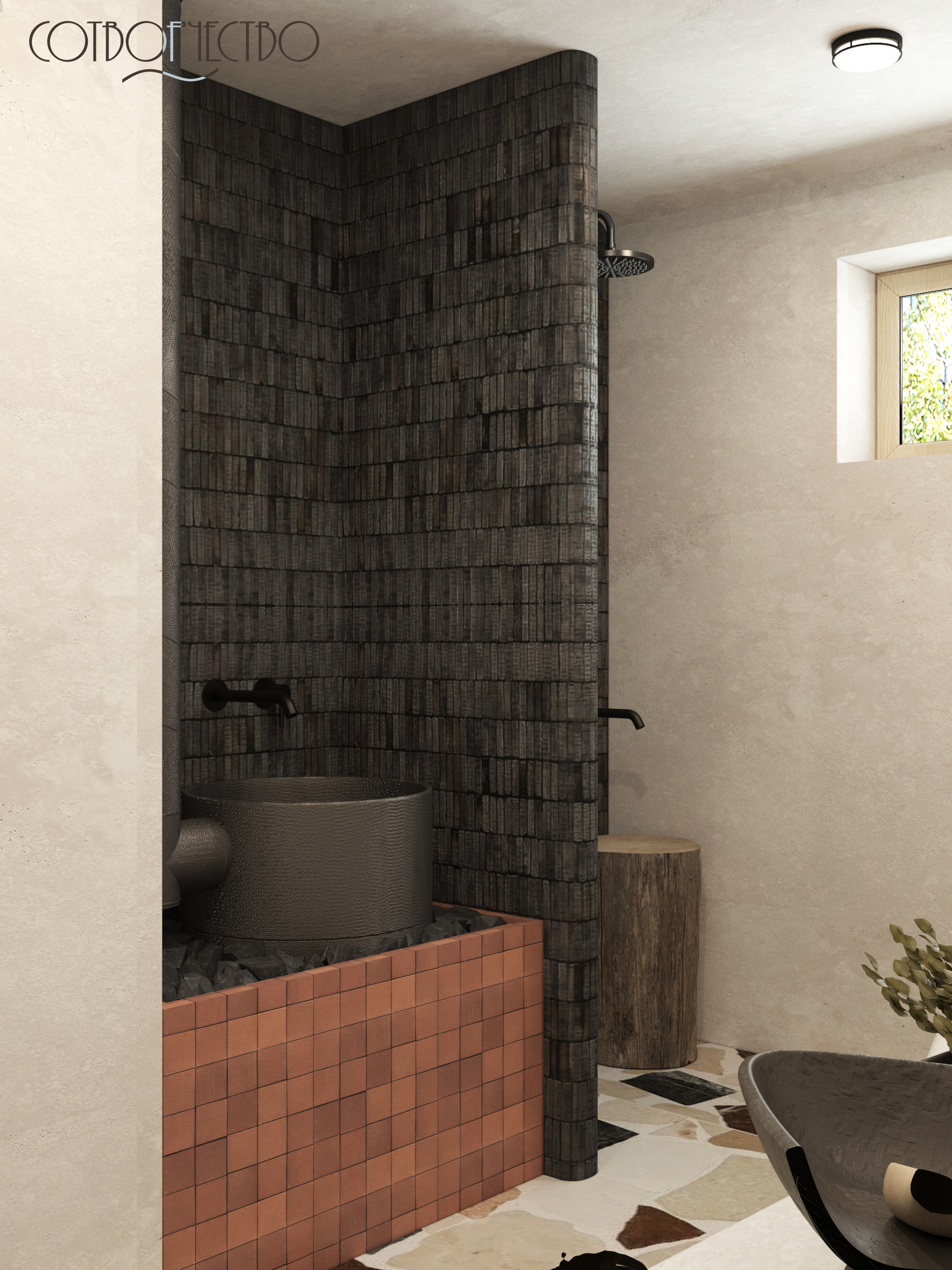Наш новый проект, наполненный семейными традициями. Объект располагается в Карачаево- Черкесской республике, в ст. Зеленчукская. Это очень важная часть дома, которую необходимо было продумать по функциональному назначению (душ, зона парилки, зона раковины). Пространство наполнено природными мотивами, тактильно приятные материалы, наложение фактур, и, терракотовые акценты, ведь регион славится своей величественной Природой горами, чистыми лесами и озерами. Это вдохновило нас на создание дизайна, а так же с этим проектом нам помог Аквамир!