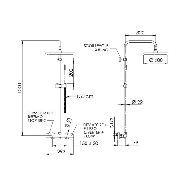 3. Штанга. Опора, фиксирующаяся на стене, внутри которой чаще всего проходит гибкий шланг. В верхней ее точке находится верхний душ, подающий воду вертикально. Его положение не меняется практически ни в одной из моделей. Здесь же размещен кронштейн для лейки.