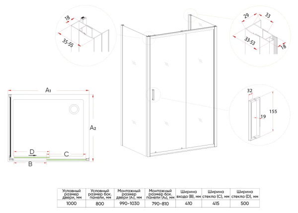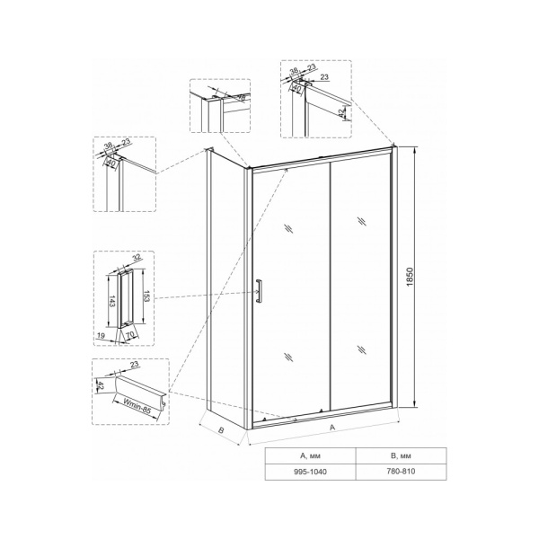 2. Раздвижные душевые уголки