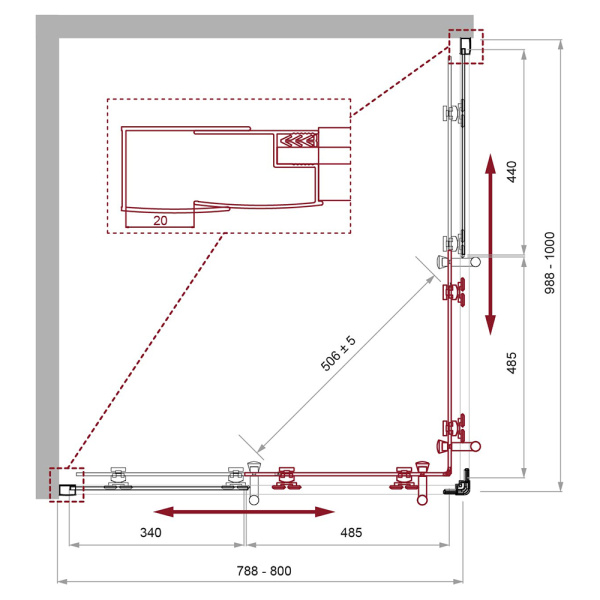 Оснащены дверями, которые открываются наружу или внутрь, обеспечивая удобный доступ. Такие уголки подходят для помещений с достаточной площадью перед уголком.