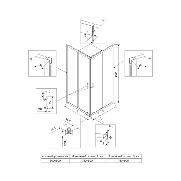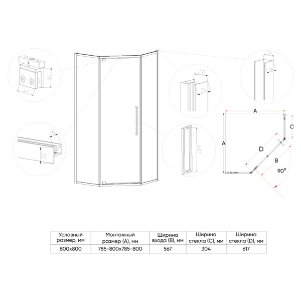 5. Прямоугольные и квадратные душевые уголки