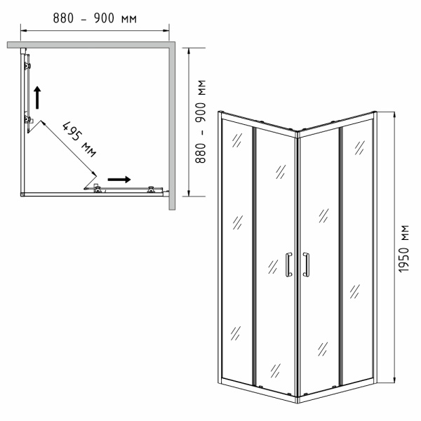 Оснащены дверями, которые открываются наружу или внутрь, обеспечивая удобный доступ. Такие уголки подходят для помещений с достаточной площадью перед уголком.