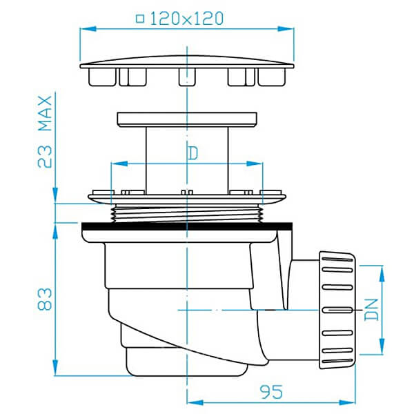 Сифон для душевого поддона 1 1/2"х90, h 65 ANI E320C, хром