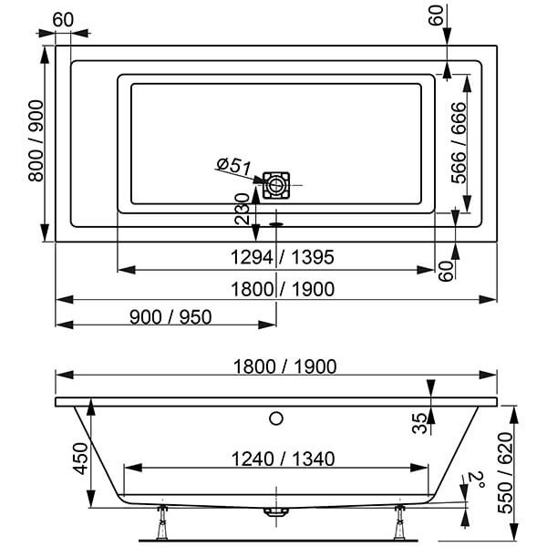 • Прямоугольные — классический вариант для стандартных ванных комнат.