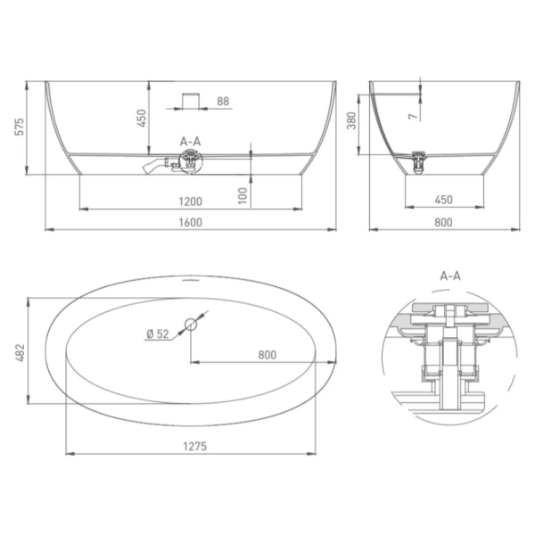 Ванна из искусственного камня отдельностоящая Amore 160х85х71 SilkSTONE PAA VAAMS/00