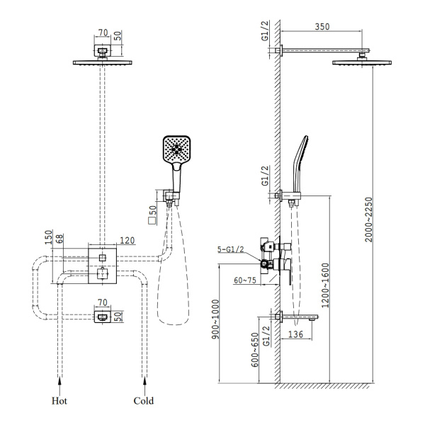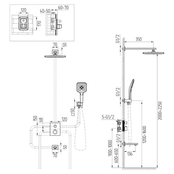 Для подключения ручного душа используются скрытые шланговые соединения, которые сохраняют аккуратный внешний вид и обеспечивают гибкость использования.